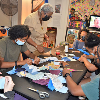 Empathy, art and so much more! Seven of our WIT Young Leaders locked arms while walking across the Edmund Pettus Bridge, listened intently to the Gee’s Bend Quilters while stitching squares, and felt the cool mist on their faces while standing on the ferry as we crossed the Alabama River heading to Camden, Alabama. We were expecting to learn about how quilts became a focal point in African American history; however, we were unaware of the many uses of quilts that shaped African American culture. We were particularly surprised to learn that quilts were adapted to serve as feminine hygiene products! Our experiential learning time spent reflecting in the rain, driving over dirt roads and holding the hands of quilters ended where it began -- rooted in the mission of Women in Training, Inc: highlighting period poverty, alongside numerous inequities past and present.